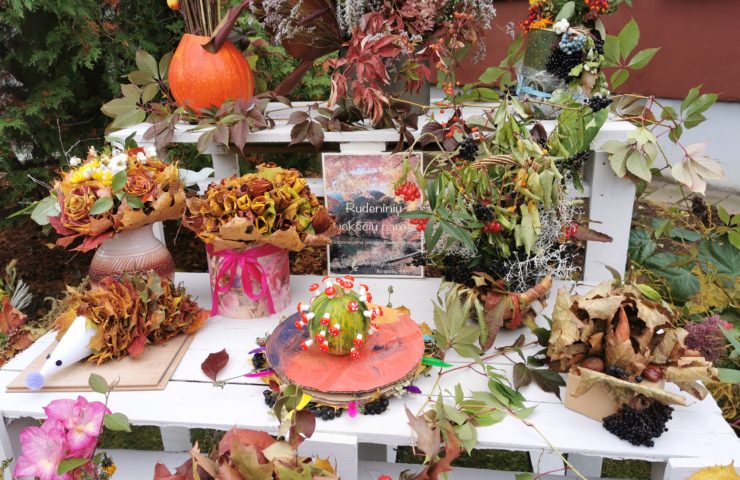 Spalio mėnesį rudens spalvos persikėlė į mūsų darželį ir papuošė spalvingomis, originaliomis rudens puokščių kompozicijomis, kurias iš rudeninių lapų ir gėlių, gamtinės medžiagos sukūrė mūsų ugdytiniai ir jų tėveliai, mokytojos.