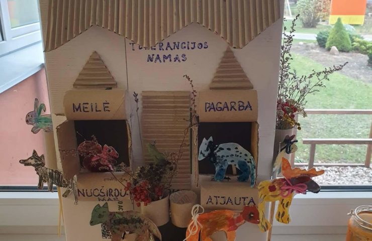 Šių 2022 metų Tolerancijos dienos idėja – Tolerancijos namas. Lapkričio 16 d. grupėse vyko pokalbiai su vaikais apie savo artimiausią aplinką, ten, kur gyvename. Diskutavome apie žmonių tarpusavio santykius, tolerancijos / netolerancijos atvejus. Nes šių metų Tolerancijos dienos ženklas namas – skirtas aptarti tai, jog žmonės gyvena visuomenėje, kaip daugiabutyje name, kuriame kaimynai skirtingi, bet tai netrukdo žmonėms bendrauti, gyventi kaimynystėje. Tačiau kartais žmonių skirtingumas sukelia kitiems pyktį. Tad per siūlomą Tolerancijos namo simbolį diskutavome apie skirtingus požiūrius, situacijas iš šių dienų aktualijų bei pavyzdžių iš istorijos.