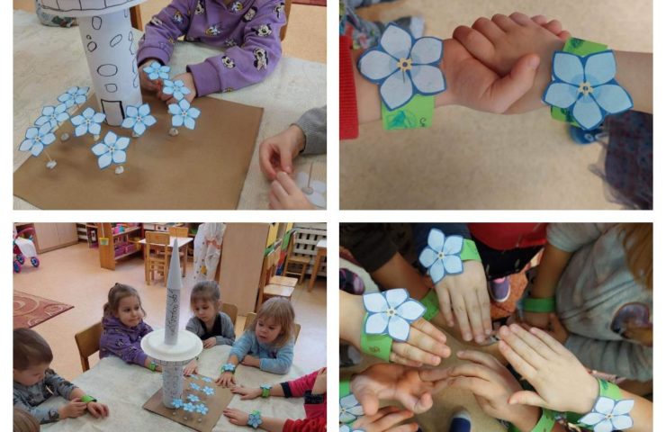Vaikai patyriminėje veikloje statė Vilniaus miesto statinius bei šiai dienai itin svarbų – Televizijos bokštą… Pasigaminę po neužmirštuolės žiedą, mažieji su pedagogais susirinko į darželio kiemą, Laisvės gynėjų dienai paminėt, pražydo neužmirštuolių pieva …