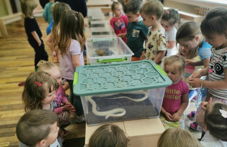 Birželio 16 d. į mūsų lopšelį-darželį atkeliavo nariuotakojų ekspozicija su edukaciniu projektu ,,Nebaisos”. Vaikai turėjo galimybę iš arčiau susipažinti su nuostabiaisiais gyvūnėliais: voru-paukštėda, vienu iš didžiausių pasaulio tarakonu, blakėmis, šimtakojais, skėriais, rupūže aga, leopardiniu driežiuku, baltuoju smaugliuku ,,Snieguole”, ropliuku-drakoniuku.